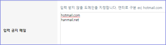 입력 금지 메일을 지정할 수 있는 설정이 있습니다.